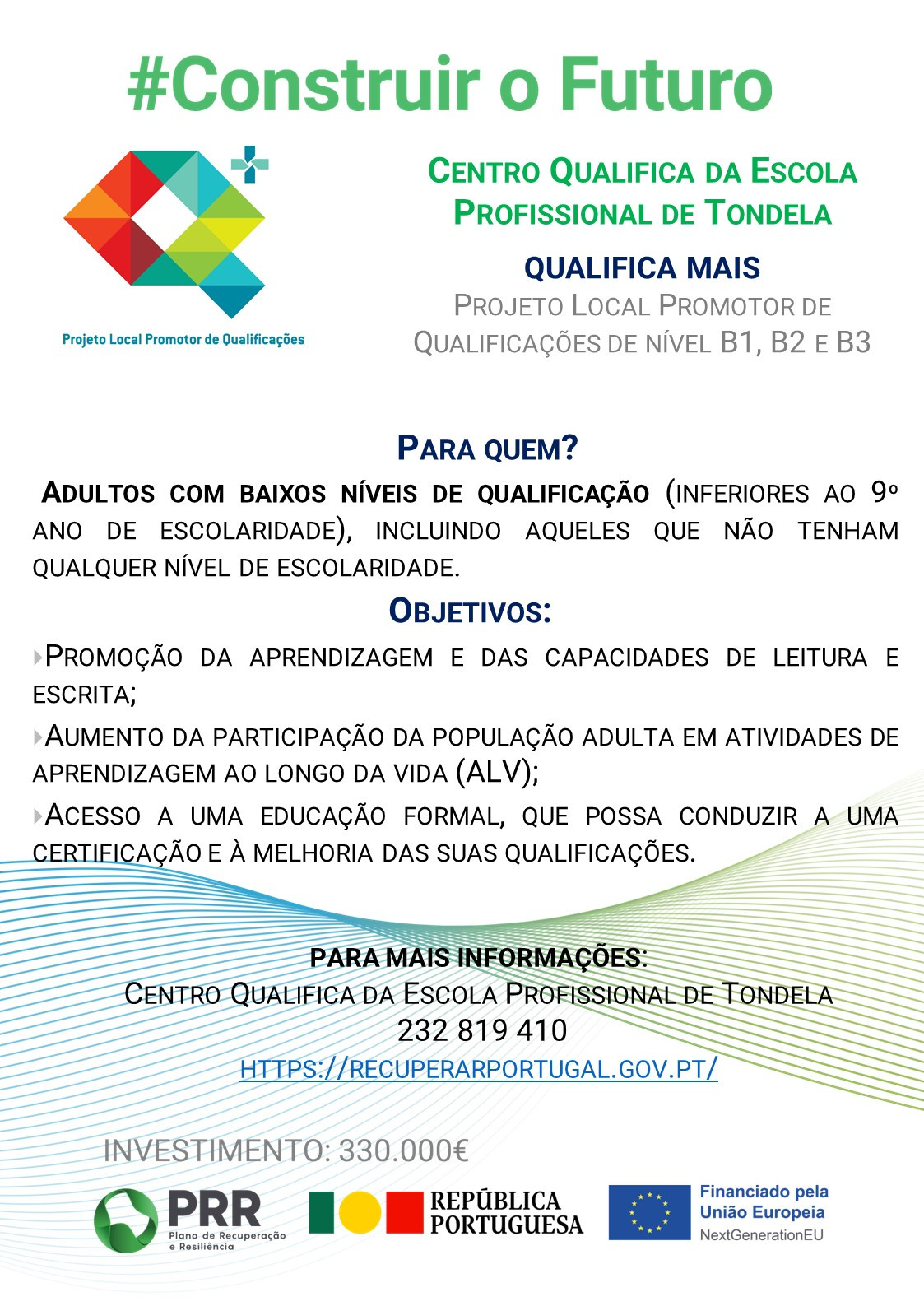 O projeto Qualifica Mais, do Centro Qualifica da Escola Profissional de Tondela, encontra-se no último ano de funcionamento e tem tido um impacto muito relevante na promoção da qualificação da população adulta com muito baixas qualificações.